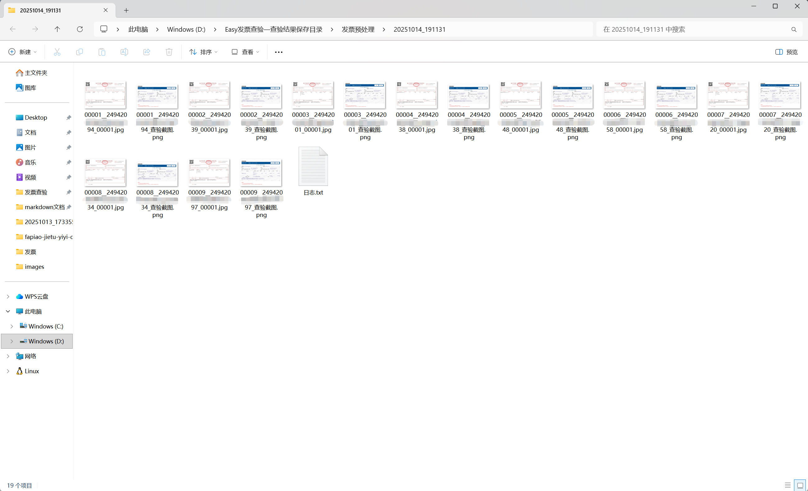 软件自动完成发票识别和查验,并生成“发票和查验截图(一一对应)”文件夹,pdf格式发票与图片格式查验截图一一对应。